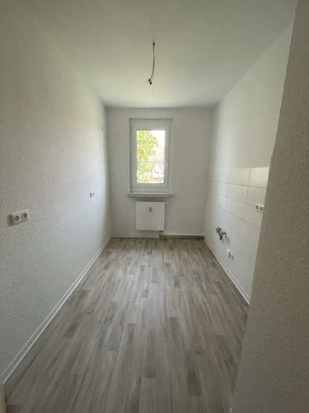 In der Küche befindet sich ein Fließenspiegel über den Nassstrecke und ein Elektroherdanschluss.