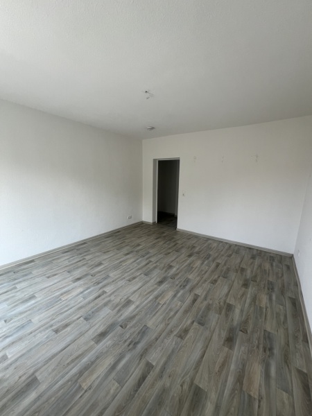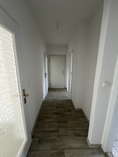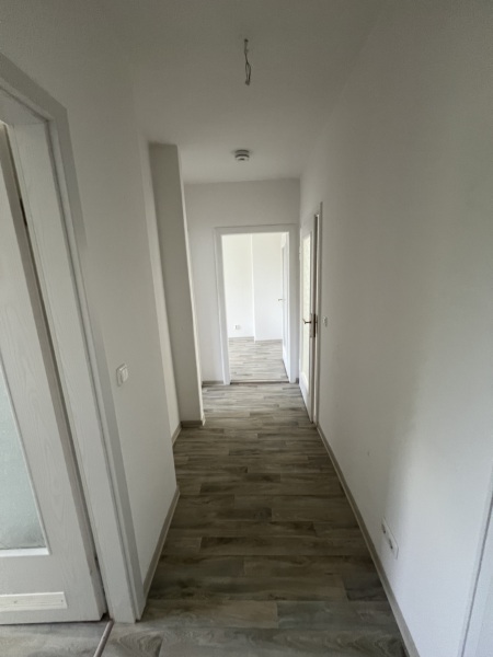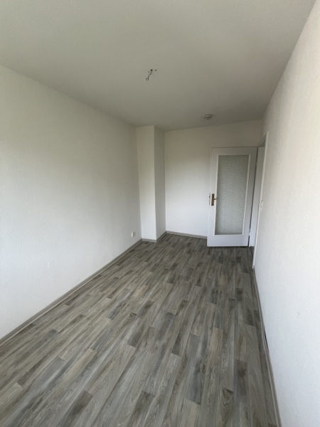 Die Wände sind mit Raufasertapete tapeziert. Als Fußbodenbelag wird neuer pflegeleichter CV-Belag in Laminatoptik oder textiler Bodenbelag verlegt.
