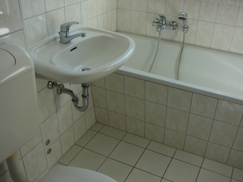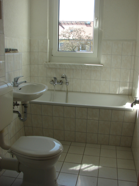 Das Tageslichtbad wird komplett neu gefließt und ist mit einer Wanne ausgestattet.