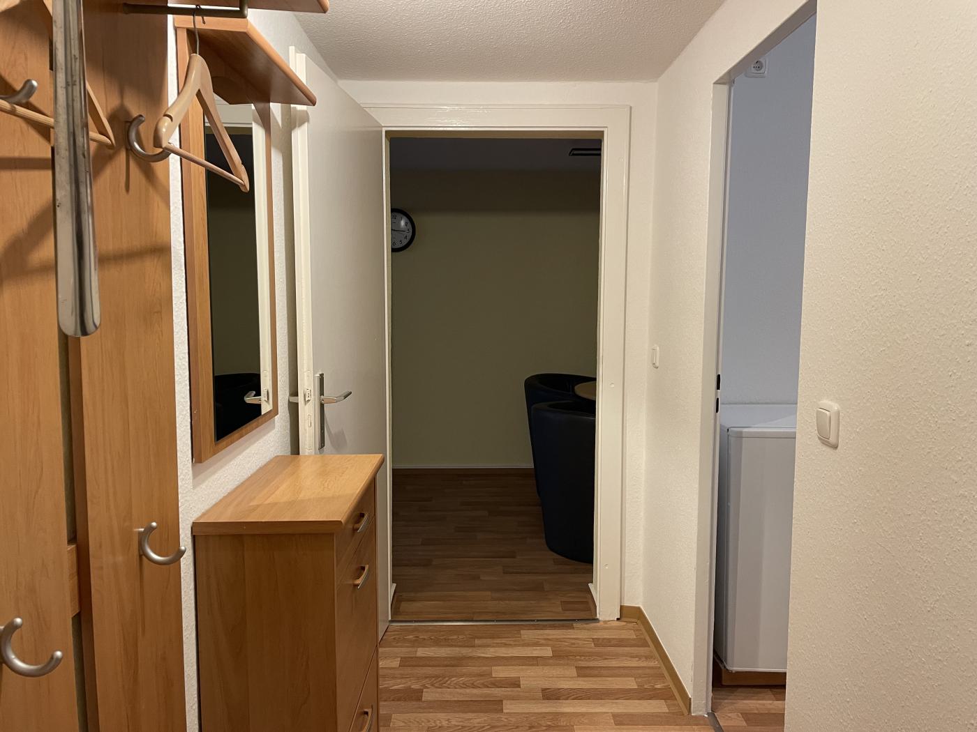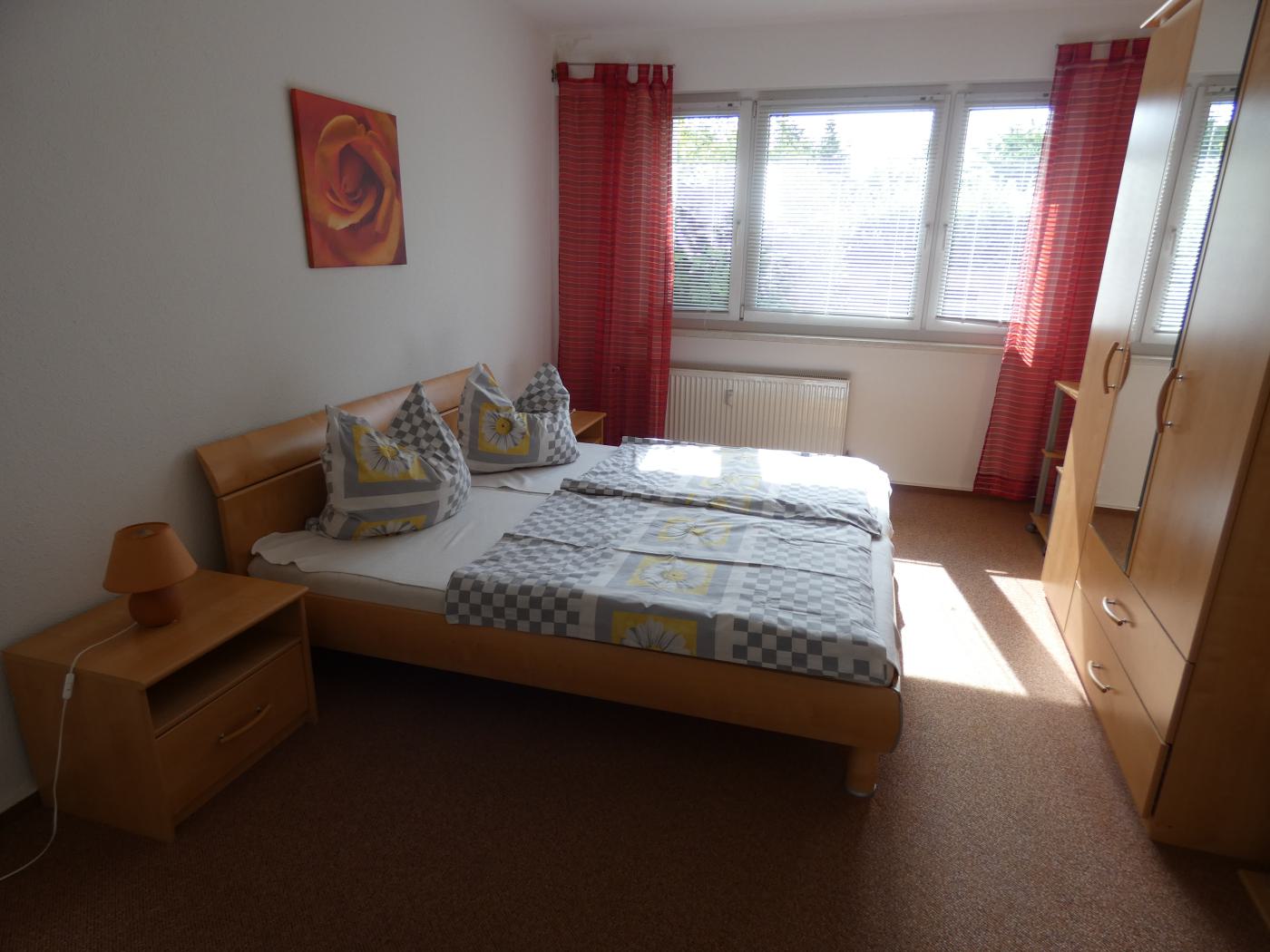 - Schlafzimmer: Doppelbett und Kleiderschrank