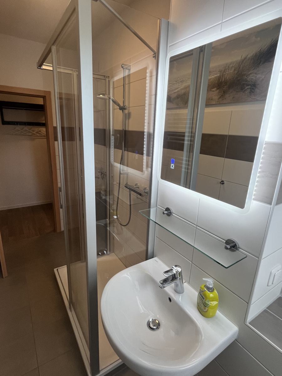 - Bad: modernes Bad mit WC und Dusche